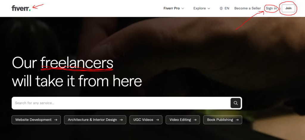 Just like I’m doing – I opened Fiverr with this email address, and the “Sign In/Join” option appeared, meaning I didn’t create an account. Perfect!