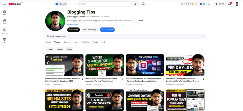 I have a YouTube channel called Blogging Tips where I share blogging, SEO, content writing and my personal journey.